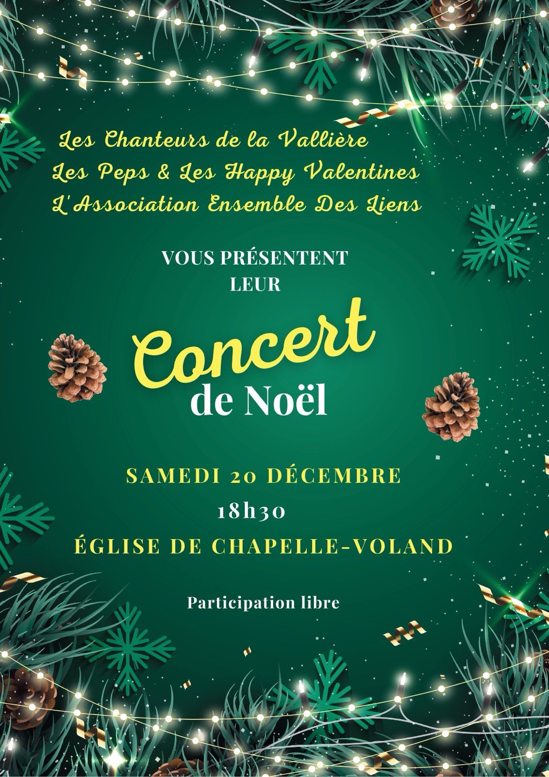 Manifestations de Noël Chapelle Voland Par - 10 décembre 2025 0 60 Partager Facebook Twitter Linkedin Email Print Cet évènement a expiré.
