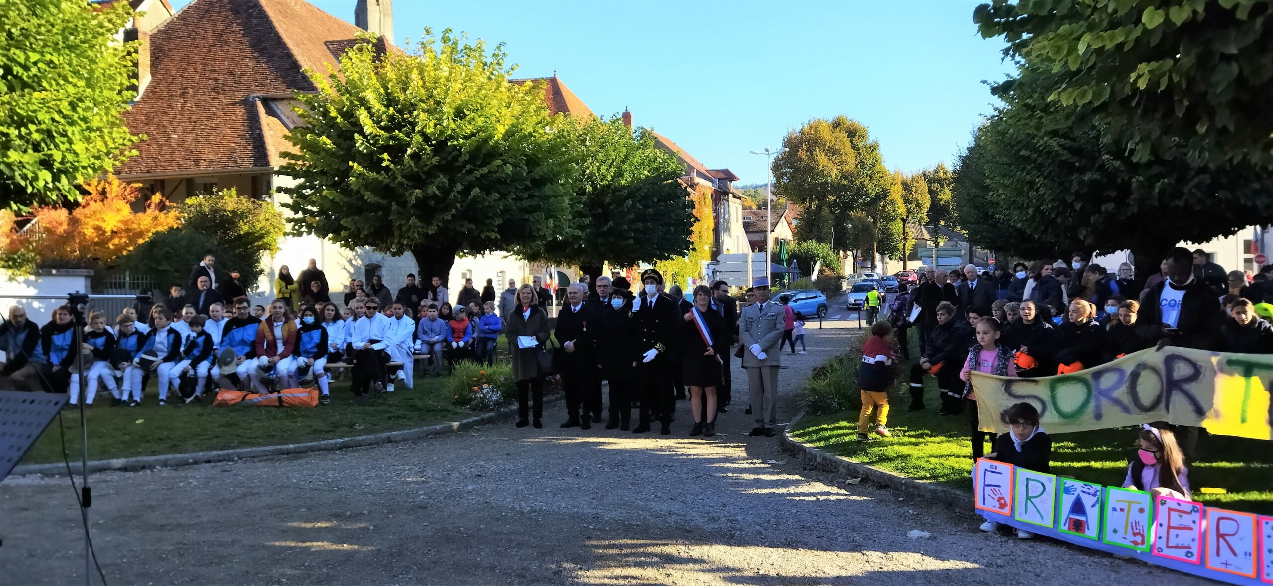 les officiels entourés de la jeunesse arboisienne