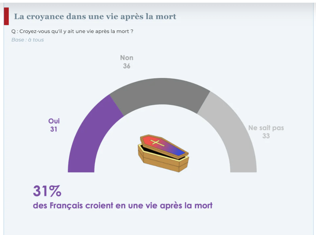 En 1948, 58% des Français croyaient en la vie éternelle. Ce chiffre a chuté à 27% en 2023.