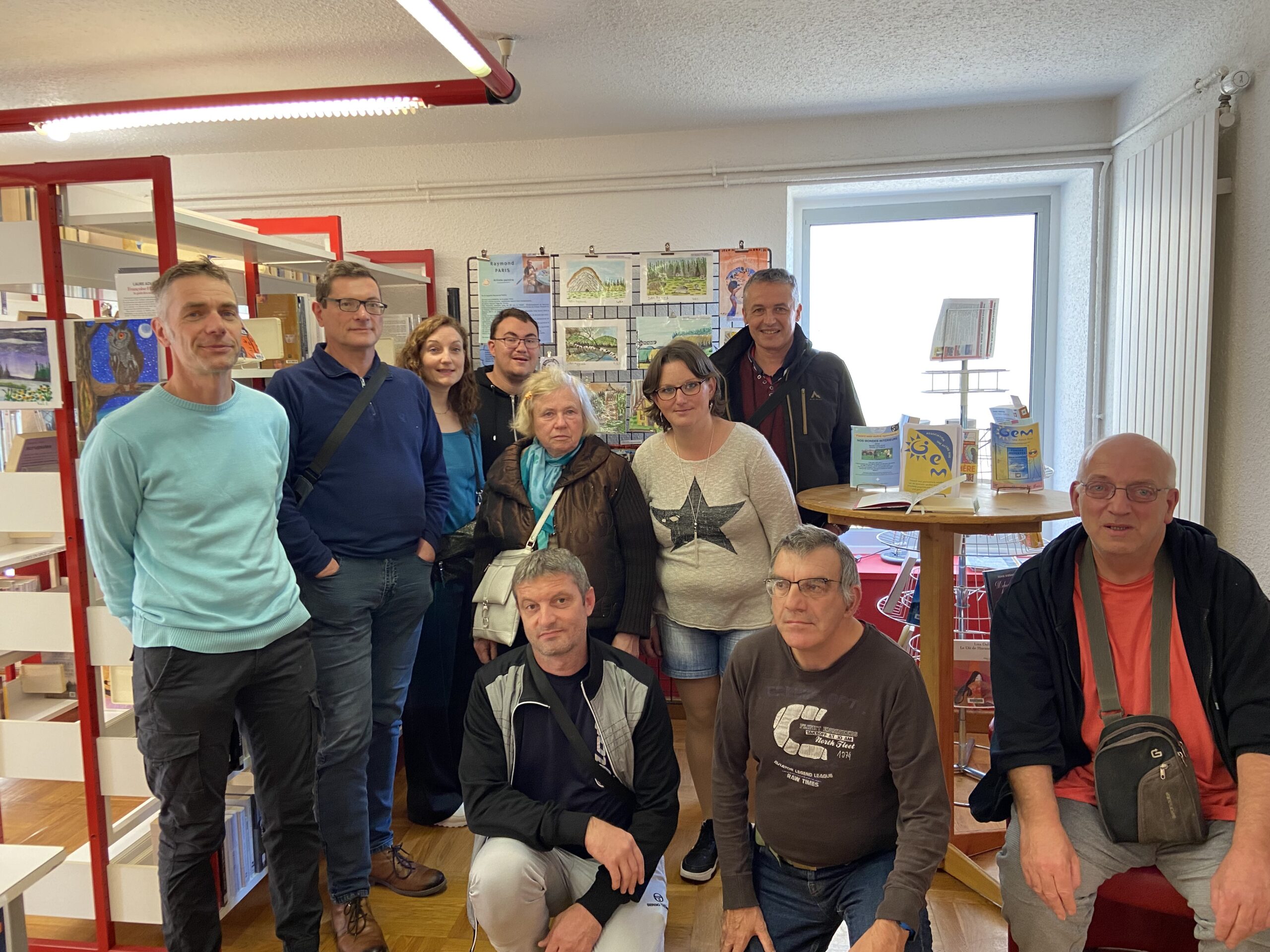 Pendant près de deux semaines, du 6 au 18 octobre, les tableaux de Raymond Paris ont investi les murs et les étagères de la médiathèque, transformant les lieux en un espace d’exposition chaleureux et coloré. Une visite a été organisée en présence d’une dizaine d’adhérents du GEM, accompagnés de leur animatrice Lise Vermillet et du secrétaire de l’association, Raphaël Berthaud. L’artiste a présenté ses œuvres avec fierté, partageant son parcours et ses inspirations.