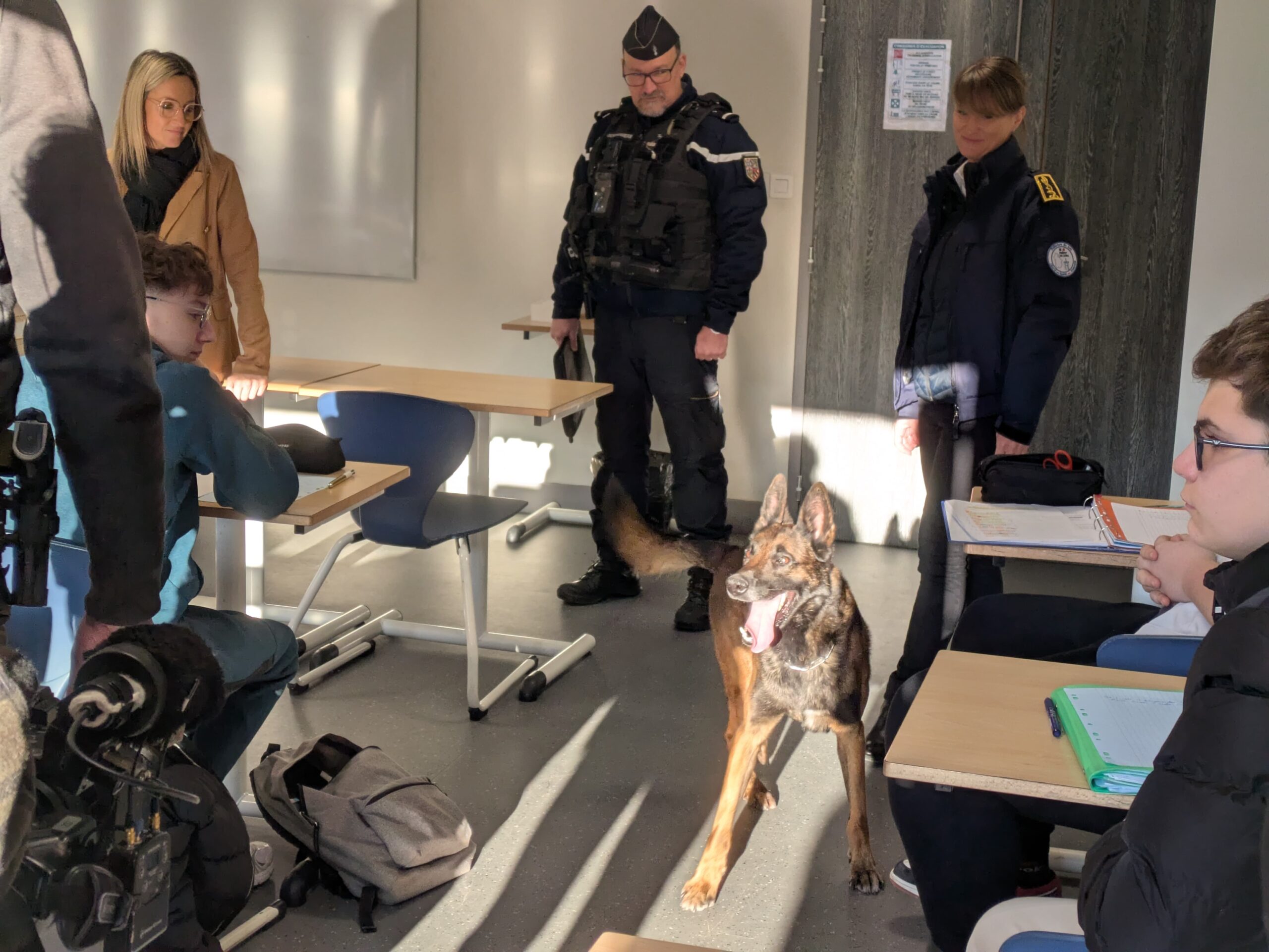 Un chien de détection de la brigade cynophile de Valdahon a fouillé six salles de classe.