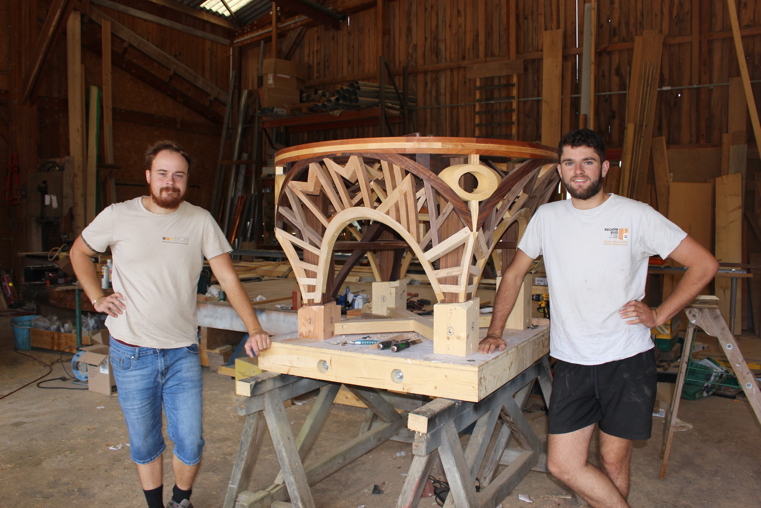 Tous deux en formation à la Fédération compagnonnique des métiers du bâtiment, Guillaume et Mattéo participent à la réalisation d’un projet d’envergure : un chef-d’œuvre collectif marquant les 80 ans de la fusion des Compagnons Charpentiers des Devoirs du Tour de France en 1945. Véritable hommage à leurs aînés, ce monument de 4 mètres de haut et 1,5 mètre de large mobilise 14 jeunes compagnons répartis sur plusieurs départements. Plus de 1 000 heures de travail ont déjà été consacrées à sa conception, et le chantier se poursuit avec enthousiasme.