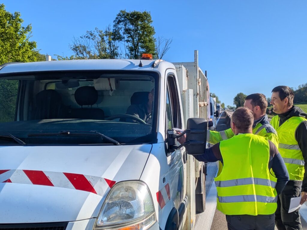 Jura. « La plupart des gens nous encouragent » : blocage filtrant à Lons et opération escargot depuis Dole par les artisans du bâtiment