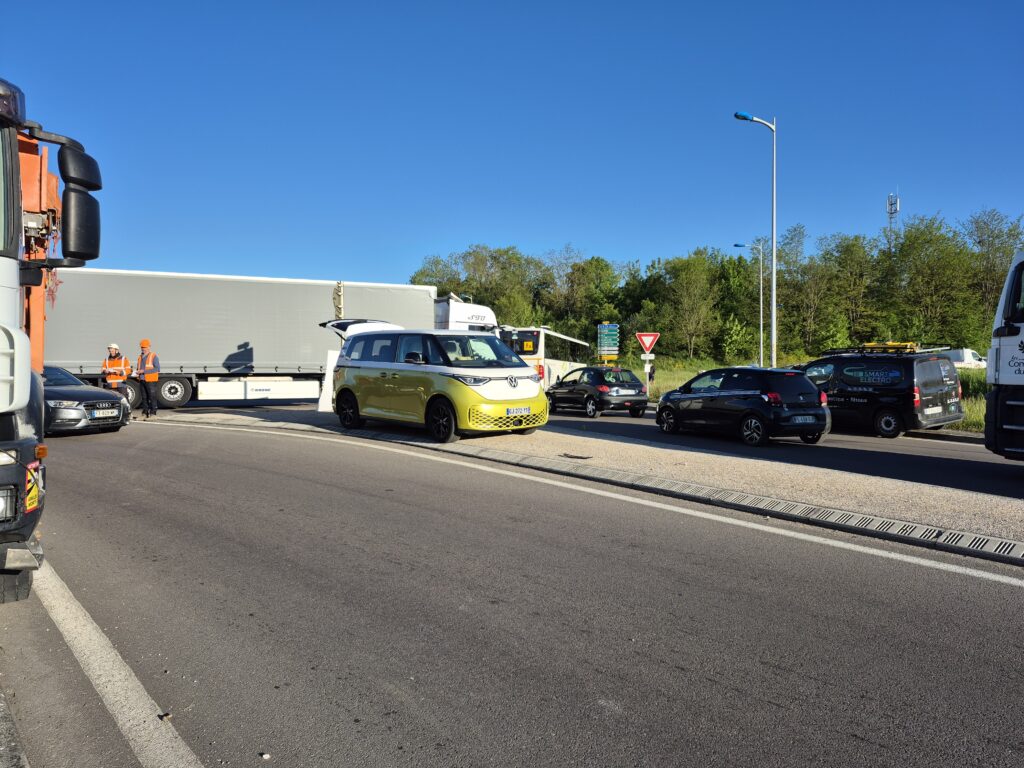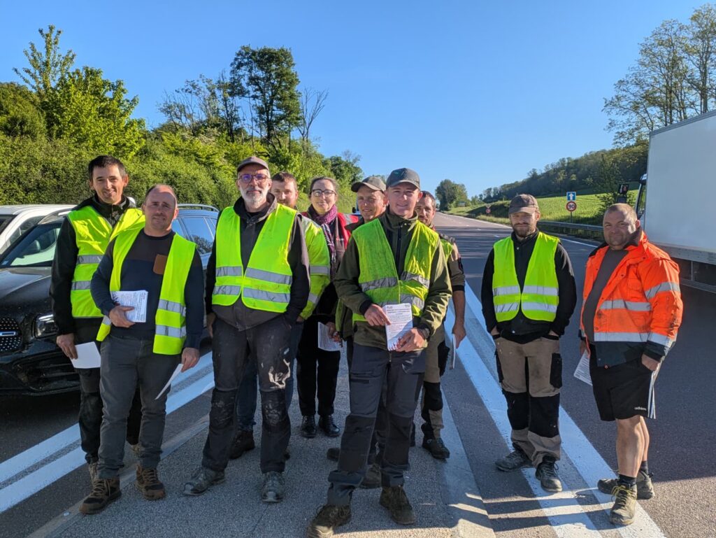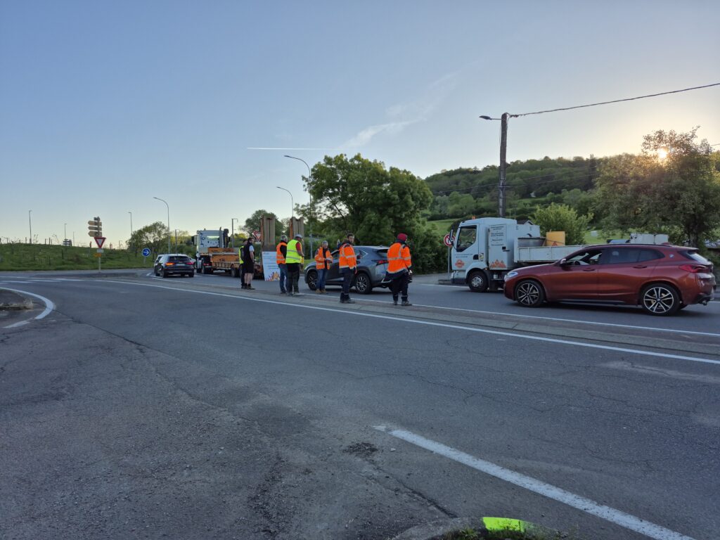 À Messia, ils étaient une vingtaine aux alentours de 7 h 30, tenant un barrage filtrant avec un temps d’attente d’une dizaine de minutes pour les automobilistes. Au rond-point du Rocher, à Perrigny ou à celui de l’Étoile, ce blocage était un peu plus important, sans toutefois créer des incidents, et avec un plutôt bon accueil de la part des personnes ralenties. « Les gens sont assez réceptifs, la plupart nous encouragent », affirme David Rebouillat, paysagiste de Bletterans, présent sur le blocage du rond-point de l’Étoile. « Parce qu’on défend aussi leur pouvoir d’achat. Le prix de nos chantiers a augmenté de 10 à 20 % à cause de cette hausse », informe le travailleur.