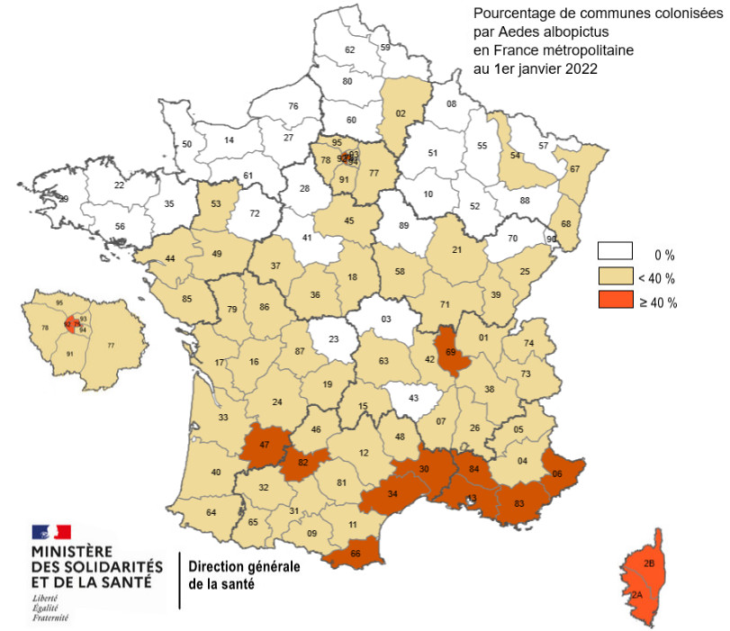 Aedes albopictus est implanté dans cinq départements :
