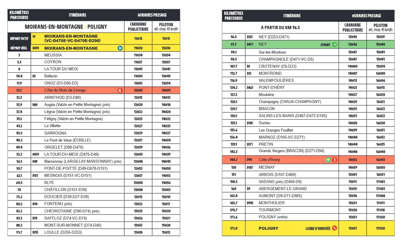 Les concurrents traverseront ensuite le cœur du Jura et sa ville de Champagnole, en direction de Salins-les-Bains, par la côte de Bracon/Ivory, et poursuivront en direction de Mesnay et Arbois.