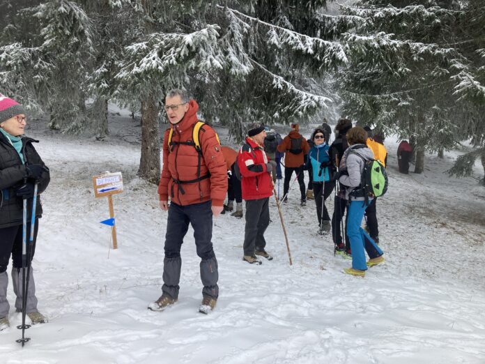 Un dilemme s’est alors posé : fallait-il chausser les raquettes ou partir en baskets ? Après avoir rassuré les participants sur l’état des chemins, les organisateurs ont finalement laissé chacun choisir son mode de déplacement. Juraquette ou Jurabasquet ont ainsi pu cohabiter, dans un esprit bon enfant. La randonnée a ensuite été lancée à 10 heures par le traditionnel coup de fusil du starter du jour.