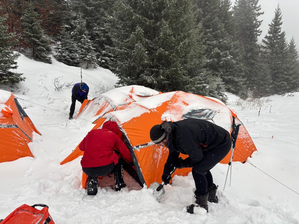 Les stages se déroulent généralement à Lélex-Monts Jura, alternant théorie et pratique. Monter une tente en conditions extrêmes fait partie des exercices clés : d’abord à l’abri, puis en situation réelle, vent et neige compris. Une erreur sur le terrain peut devenir dramatique : tente emportée, matériel endommagé, exposition prolongée au froid.