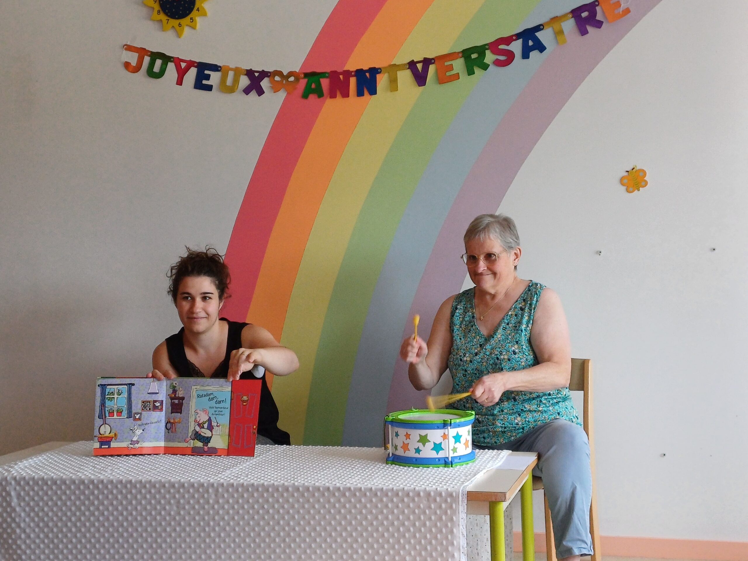 Aux côtés de Marie Paléologue, toute nouvelle animatrice, on retrouvait Françoise Brocard, cheville ouvrière du Relais depuis son ouverture, ainsi que Catherine Ménétrier, venue de Salins-les-Bains et Champagnole. Le programme était à la hauteur de l’événement : un “discours conté”, une lecture de Kamishibaï, un parcours pieds nus, des ateliers sensoriels, de la danse libre et des bulles géantes ont rythmé la matinée.