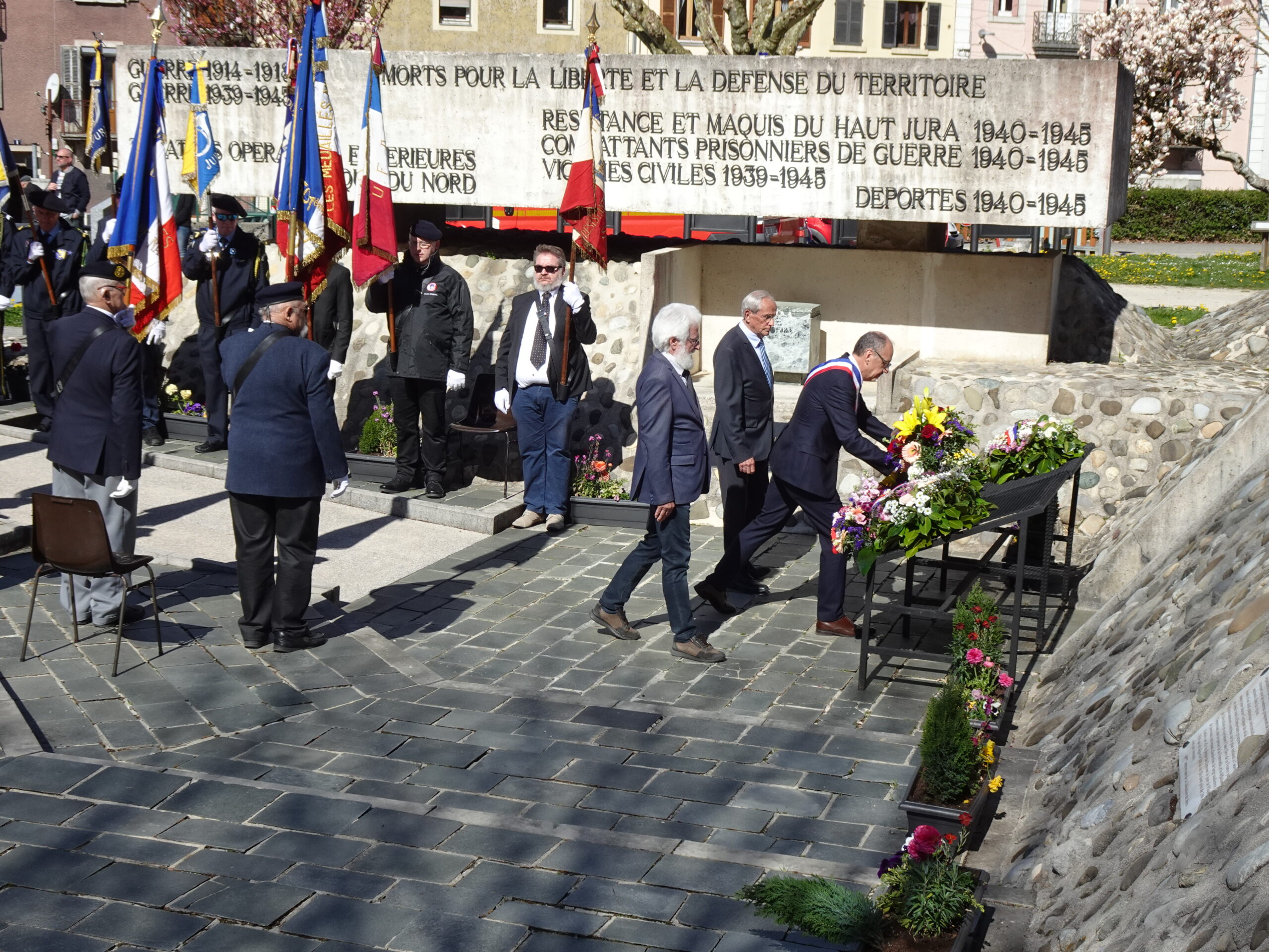 Lors de cette cérémonie officielle, organisée notamment au monument aux morts de la ville, plusieurs personnalités étaient présentes. Parmi elles, Silvère Say, sous-préfet de l’arrondissement de Lons-le-Saunier et secrétaire général de la préfecture du Jura, représentait l’État, en l’absence du sous-préfet de Saint-Claude, François Huet, récemment nommé mais pas encore en fonction.