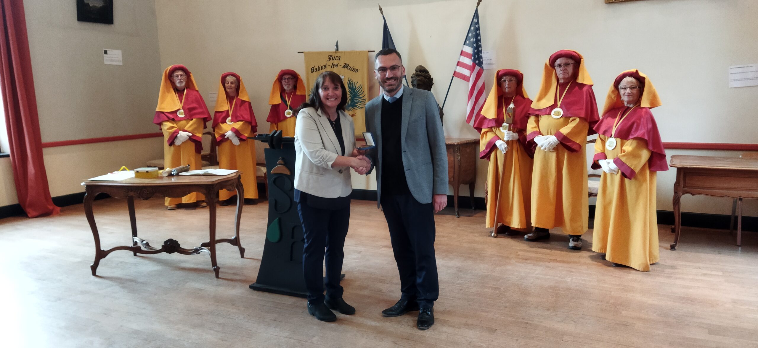La cérémonie se clôturait par la remise de la médaille de la ville à la maire d’Holbrook puis son intronisation à l’ordre de chevalier de la Confrérie de l’Or Blanc.