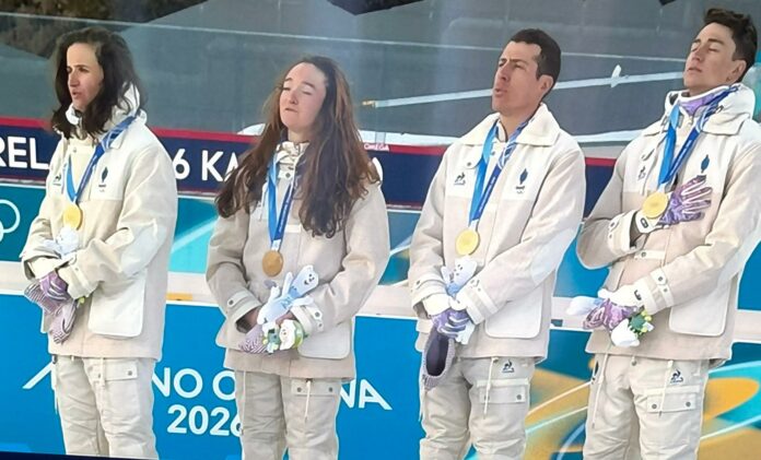 Le quatuor tricolore était composé d’Eric Perrot, Quentin Fillon Maillet, Lou Jeanmonnot et Julia Simon. Les Bleus s’imposent avec 25 secondes d’avance sur l’Italie, médaillée d’argent, et devant l’Allemagne, en bronze.